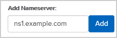 6. Navigate to "Add Nameserver" and enter our name server in the text field (for example ns1.example.com). Then click on the "Add" button. Repeat this to add our 2nd name server.