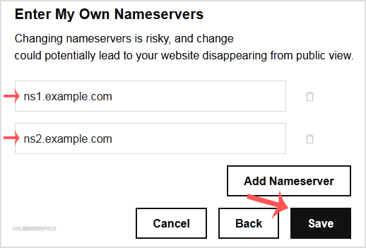 5. In Settings tab, Click on the "Manage" link under "Nameservers".