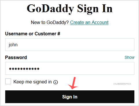 1. Open the Godaddy.com website and click on "Sign In". It will show you a login form.