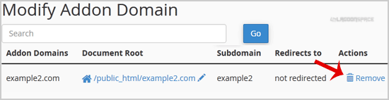 3. Locate the addon domain under "Modify Addon Domain" and then click on the "Remove" link.
