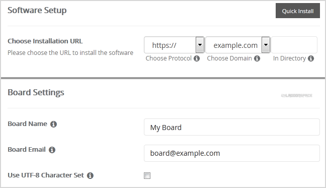 - In Directory: If you want to install this in a directory, for example example.com/forum, enter the directory name. Otherwise, leave this blank to install in your main domain example.com