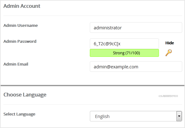 - Admin Username: Your new eggBlog username (for security reason do not use the "Administrator" or the "Admin" username.)