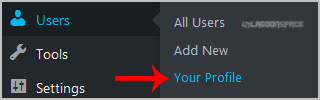 2. Under the dashboard menu, hover your mouse over "Users" and then click on "Your Profile".