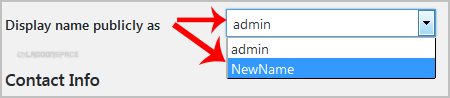 4. In the option “Display name publicly asâ€, choose your newly added nickname from the drop-down menu.
