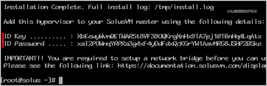 Once it completes, it will show you the Slave keys and further instructions for your virtualization type. Now you can use these keys to add a node in your SolusVM Master panel. You will need a SolusVM Slave license for each node.